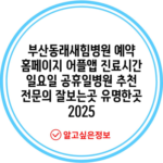 부산동래새힘병원 예약 홈페이지 어플앱 진료시간 일요일 공휴일병원 추천 전문의 잘보는곳 유명한곳 2025