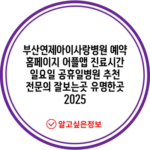 부산연제아이사랑병원 예약 홈페이지 어플앱 진료시간 일요일 공휴일병원 추천 전문의 잘보는곳 유명한곳 2025