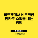 비트코인 단타 매매는 짧은 시간 내에 가격 변동을 이용해 수익을 추구하는 전략으로, 많은 투자자들에게 인기 있는 방법입니다. 특히 비트겟과 같은 거래소에서는 거래의 효율성과 속도를 극대화할 수 있는 다양한 도구를 제공하고 있어, 초보자부터 숙련된 트레이더까지 모두 활용할 수 있습니다. 이 글에서는…
