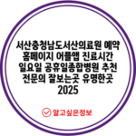 서산충청남도서산의료원 예약 홈페이지 어플앱 진료시간 일요일 공휴일종합병원 추천 전문의 잘보는곳 유명한곳 2025