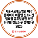 서울구로예스병원 예약 홈페이지 어플앱 진료시간 일요일 공휴일병원 추천 전문의 잘보는곳 유명한곳 2025