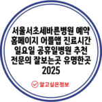 서울서초세바른병원 예약 홈페이지 어플앱 진료시간 일요일 공휴일병원 추천 전문의 잘보는곳 유명한곳 2025