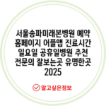 서울송파미래본병원 예약 홈페이지 어플앱 진료시간 일요일 공휴일병원 추천 전문의 잘보는곳 유명한곳 2025