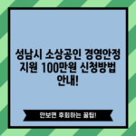 성남시 소상공인 경영안정 지원 100만원 신청방법 안내!