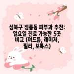 성북구 정릉동 피부과 추천: 일요일 진료 가능한 5곳 비교 (여드름, 레이저, 필러, 보톡스)
