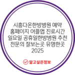 시흥다온한방병원 예약 홈페이지 어플앱 진료시간 일요일 공휴일한방병원 추천 전문의 잘보는곳 유명한곳 2025