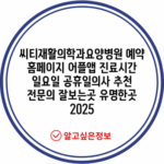씨티재활의학과요양병원 예약 홈페이지 어플앱 진료시간 일요일 공휴일의사 추천 전문의 잘보는곳 유명한곳 2025
