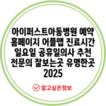 아이퍼스트아동병원 예약 홈페이지 어플앱 진료시간 일요일 공휴일의사 추천 전문의 잘보는곳 유명한곳 2025