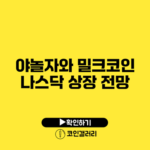 야놀자와 밀크코인의 나스닥 상장 전망은 한국의 IT 기업과 가상화폐 시장에서의 큰 변화의 상징입니다. 이러한 변화는 앞으로의 투자 방향을 새롭게 설정할 수 있는 기회를 알려알려드리겠습니다. ✅ 야놀자와 밀크코인의 상장 전망을 확인하고 투자 전략을 세워보세요. 👉 상장 전망 자세히 알아보기 야놀자와 밀크코인:…