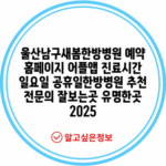 울산남구새봄한방병원 예약 홈페이지 어플앱 진료시간 일요일 공휴일한방병원 추천 전문의 잘보는곳 유명한곳 2025