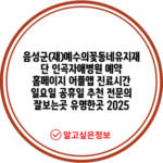 음성군(재)예수의꽃동네유지재단 인곡자애병원 예약 홈페이지 어플앱 진료시간 일요일 공휴일 추천 전문의 잘보는곳 유명한곳 2025