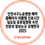 인천서구노송병원 예약 홈페이지 어플앱 진료시간 일요일 공휴일병원 추천 전문의 잘보는곳 유명한곳 2025