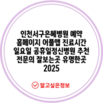 인천서구은혜병원 예약 홈페이지 어플앱 진료시간 일요일 공휴일정신병원 추천 전문의 잘보는곳 유명한곳 2025
