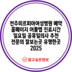 전주미르피아여성병원 예약 홈페이지 어플앱 진료시간 일요일 공휴일의사 추천 전문의 잘보는곳 유명한곳 2025