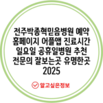 전주박종혁믿음병원 예약 홈페이지 어플앱 진료시간 일요일 공휴일병원 추천 전문의 잘보는곳 유명한곳 2025