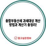 종합부동산세 과세대상 계산방법 계산기 내용 총정리 종합부동산세 과세대상 계산방법 계산기 내용 총정리는 최근 부동산 시장의 변동성과 관련하여 많은 이들의 궁금증을 해소하기 위한 포스팅입니다. 종합부동산세, 즉 종부세는 일정한 금액 이상의 토지와 주택을 소유한 개인과 법인이 부담해야 하는 세금으로, 최근 공시가격이 급등하면서…