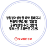 창원참여성병원 예약 홈페이지 어플앱 진료시간 일요일 공휴일병원 추천 전문의 잘보는곳 유명한곳 2025