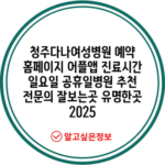 청주다나여성병원 예약 홈페이지 어플앱 진료시간 일요일 공휴일병원 추천 전문의 잘보는곳 유명한곳 2025