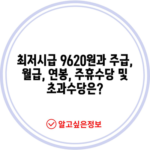 최저시급 9620원과 주급, 월급, 연봉, 주휴수당 및 초과수당은?