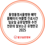 통영통영서울병원 예약 홈페이지 어플앱 진료시간 일요일 공휴일병원 추천 전문의 잘보는곳 유명한곳 2025