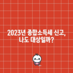 2023년 종합소득세 신고 나도 대상인가 2023년 종합소득세 신고 대상 알아보기! 종합소득세가 무엇인지, 누가 신고해야 하는지 확실히 정리해드립니다. 1. 종합소득세란 무엇인가? 종합소득세란 특정 기간 동안 개인이 벌어들인 모든 소득을 통합하여 과세하는 세금을 말합니다. 한국의 세법에 따르면, 소득세는 개인 소득에 대해 부과되고,…