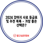 강아지 사료등급표 및 추천 2024 강아지 사료를 선택하는 것은 소중한 반려견의 건강에 직접적인 영향을 미치므로 매우 중요합니다. 본 블로그 포스팅에서는 강아지 사료등급표 및 추천 2024에 대해 자세히 살펴보도록 하겠습니다. 다양한 종류의 사료가 존재하고, 이를 어떻게 선택할지에 대한 정보가 필요합니다. 여러…
