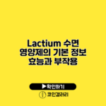 Lactium 수면 영양제: 효능, 부작용 및 올바른 사용법 앞날의 피로와 스트레스를 줄이고 숙면을 취하고자 하는 많은 사람들이 수면 영양제를 찾고 있어요. 그 중에서도 Lactium은 자연에서 유래한 성분으로 주목받고 있죠. 이 영양제가 어떻게 작용하는지, 어떤 효능과 부작용이 있는지 알아보려 해요. ✅…